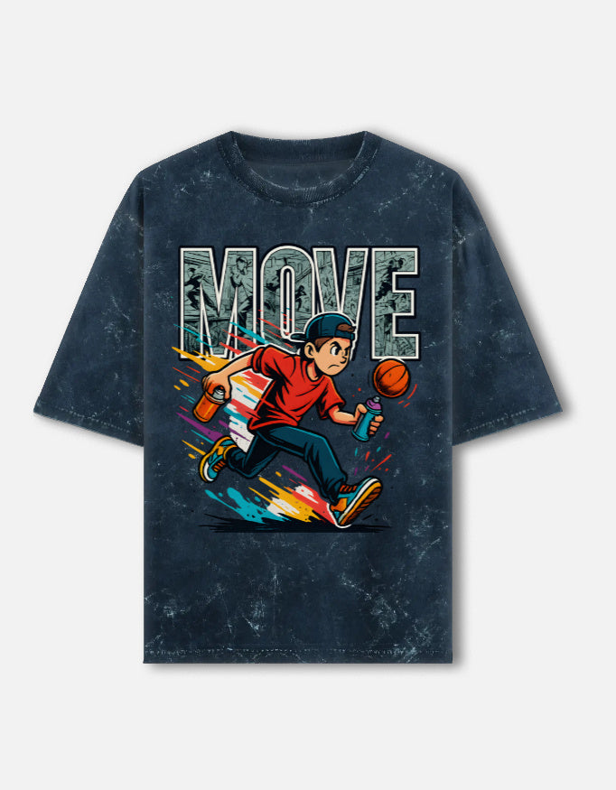 Move Unisex Acid Washed Oversized Tee