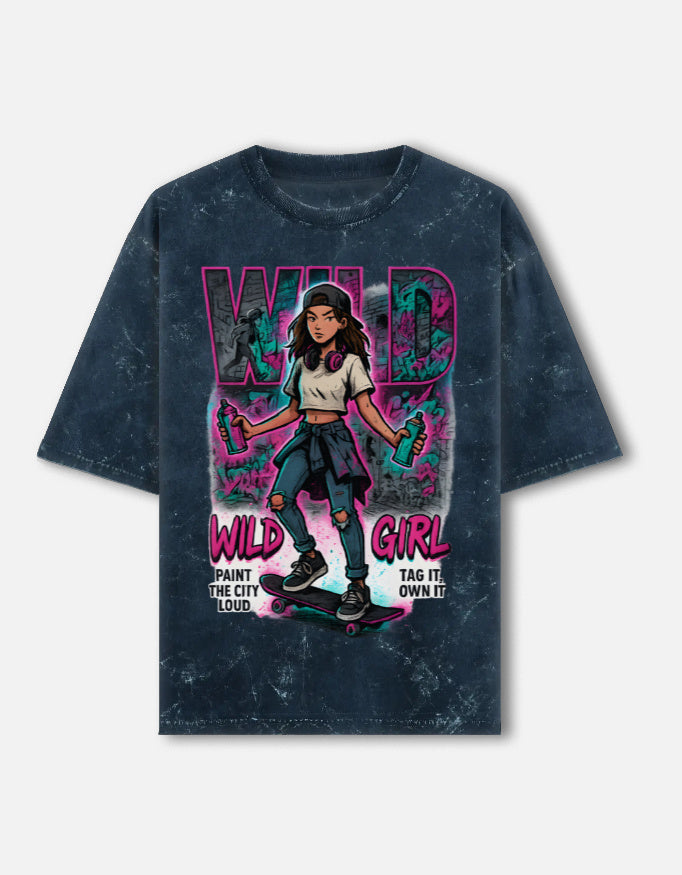 Wild Girl Unisex Acid Washed Oversized Tee